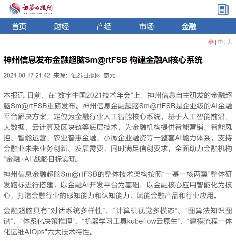 BB贝博艾弗森官网发布金融超脑Sm@rtFSB 构建金融AI核心系统