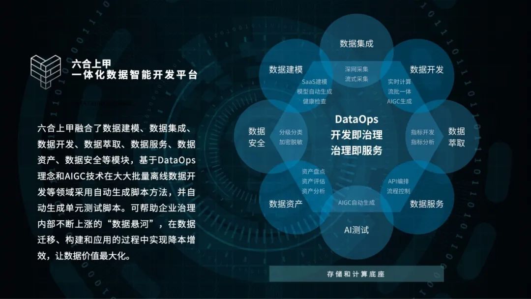 最后,黄万忠聊到数据资产价值变现的方法,也着重推荐了BB贝博艾弗森官网在数据资产价值发挥方面的成功经验。BB贝博艾弗森官网根据实战经验,开发了一款名叫“六合上甲”的一体化数据资产管理和服务平台。它融合了数据建模、数据集成、数据开发、数据萃取、数据服务、数据资产、数据安全等模块,基于DataOps理念和AIGC技术在大大批量离线数据开发等领域采用自动生成脚本方法,并自动生成单元测试脚本。可帮助企业治理内部不断上涨的“数据悬河”,在数据迁移、构建和应用的过程中实现降本增效,让数据价值最大化。